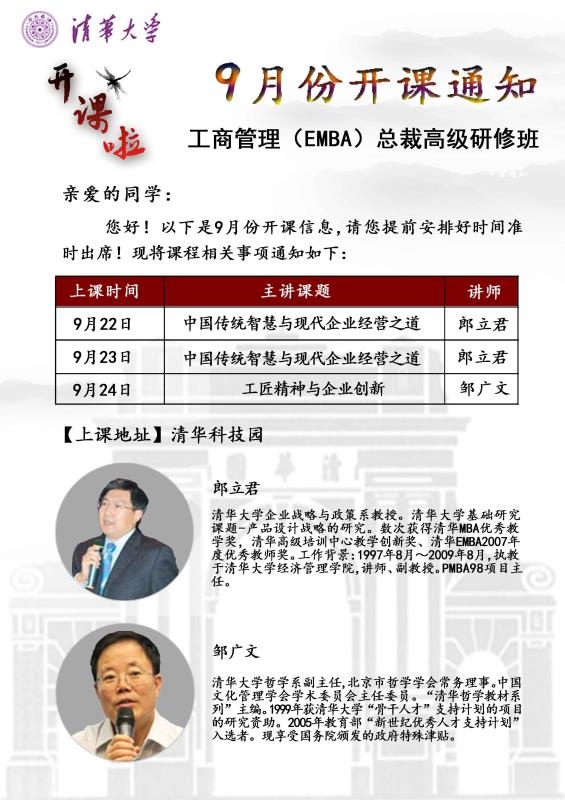 工商管理(EMBA)总裁高级研修班9月开课通知
