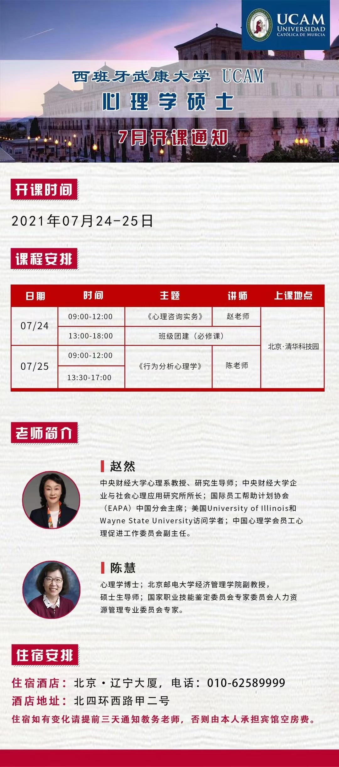 住宿如有变化请提前三天通知教务老师,否则由本人承担宾馆空房费。